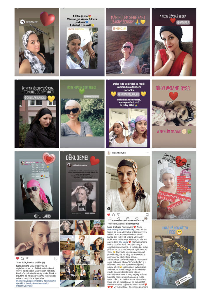 Dva příběhy dvou silných žen ve stejném roce. Kláru a Ivu svedla dohromady těžká nemoc, se kterou se obě musely poprat. Přišla nečekaně, obrátila jim životy naruby a obě donutila přehodnotit své dosavadní priority. Naučila je něco o nich samých i o lidech kolem. Setkaly se s velkou podporou, ale i nejedním předsudkem a netaktností. Tak vznikla šátková výzva, která na Instagramu vyzývá všechny, tedy i zdravé ženy, aby více nosily šátky na hlavách a sdílely své fotky s hashtagy #satkovavyzva a #satkovavyzvaproonkolozky. Škatulkující pohledy plné nepochopení, někdy až přehnané lítosti, či dokonce bázně, totiž rozhodně nepomáhají ženám, které procházejí chemoterapií. To vše přimělo Kláru, která sama bojovala o život, aby nastartovala tento projekt na podporu všech žen s nádorovým onemocněním. I když vše probíhá dobře, ztráta vlasů často ve vlastních očích představuje ztrátu ženskosti, půvabu a tím i velmi důležitého sebevědomí. Iva se k výzvě připojila hned, jakmile se o ní dozvěděla a nadšeně ji šíří dál. Kromě ní se přidaly desítky žen.